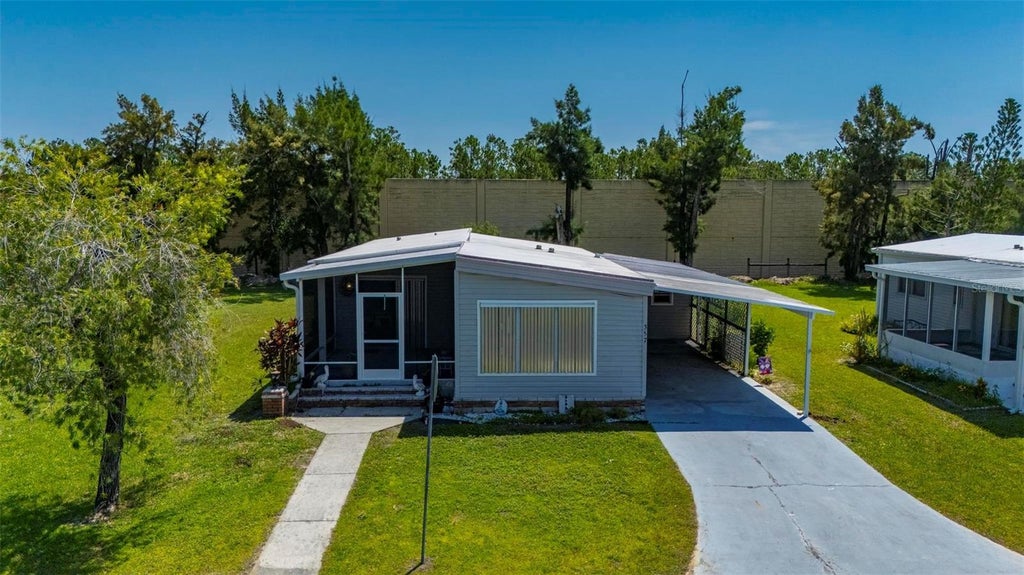 * Port Charlotte Village was Voted #1 in Charlotte County in 2024* Not in a Flood Zone Welcome to this charming 2-bedroom, 2-bathroom manufactured home located in a desirable 55+ co-op community. This well-maintained residence features a split floor plan offering comfort and privacy, along with a spacious open kitchen that flows into the dining area and a cozy living room. The living room opens to a screened-in front lanai—added in 2015—perfect for relaxing and enjoying the Florida breeze. Both bedrooms are generously sized and offer plenty of closet space. A sliding glass door from the dining room leads to a private rear patio, ideal for outdoor dining or morning coffee. The long covered carport fits two vehicles, and the attached shed includes a washer and dryer with additional space for a workshop or extra storage. Recent upgrades include a full home repipe completed in 2023, a newer water heater from 2022, and an HVAC system replaced in 2015—offering peace of mind and added value. This vibrant community is conveniently located near elite golf courses, excellent restaurants, a variety of entertainment options, shopping centers, and some of Florida’s most beautiful blue beaches—providing the perfect balance of relaxation and activity.
