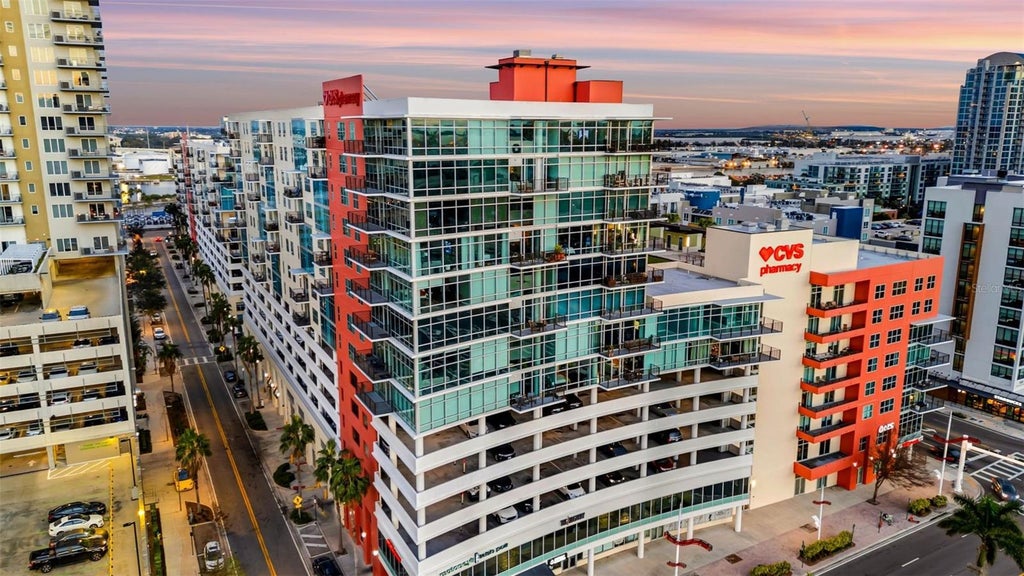 Welcome to Downtown Tampa Living! This fully renovated 1-bedroom, 1.5-bathroom condo features a versatile study room complete with a Murphy bed and closet, functioning as a second bedroom—without the two-bedroom price tag. Located in the iconic Grand Central at Kennedy, this unit is one of only two with this exclusive layout across both buildings! Recently updated with premium modern finishes, including Teodor vanities, Moen faucets, and custom shower doors, this home also boasts brand-new appliances, sleek 3-panel doors, and hurricane-impact windows for low insurance costs. Beautiful wood floors flow throughout the open-concept space, while your large private balcony offers breathtaking, unobstructed views of downtown Tampa. From sunsets to city lights, this view will capture your heart! This unit offers incredible convenience, sharing a hallway with only one other resident, a dedicated parking space, and a private storage unit. Positioned above a lively courtyard, you’ll have immediate access to the vibrant lifestyle as well as Tampa’s best restaurants, bars, shopping, and even a Publix just steps away. The luxury amenities at Grand Central take downtown living to the next level, featuring a state-of-the-art fitness center, rooftop pool and jacuzzi, and a dog run for your furry friends. Additional perks include 24/7 security, concierge services, a gated parking garage, guest parking, and key fob-secured entrances, ensuring privacy and peace of mind. This pet-friendly condo combines modern style, exceptional functionality, and unmatched convenience in one of Tampa’s well known locations. Don’t miss this rare opportunity—schedule your private showing today to experience this extraordinary home for yourself!
