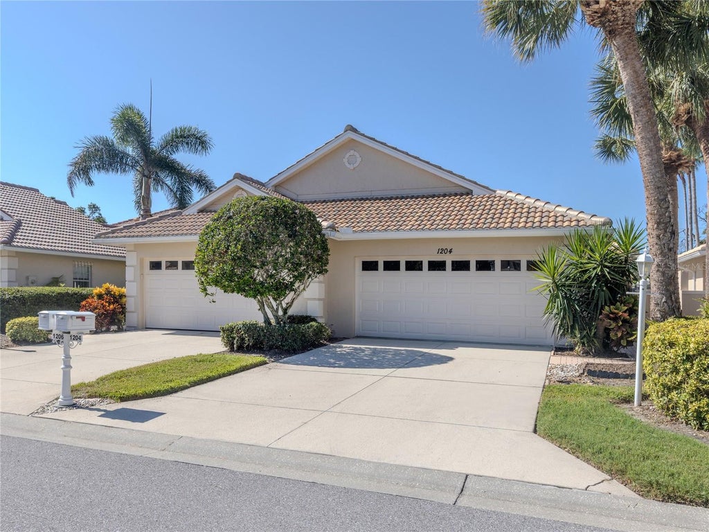BERKSHIRE PLACE WATERFORD VENICE. Surrounded by greenspace and walking paths, this community has everything you need. 2 Bedroom 2 Bathrooms PLUS DEN/office. MOVE IN READY. As you step outside, you'll love the convenience of your private mailbox right in front at your driveway and JUST A FEW STEPS TO THE POOL. PRIVATE LANAI. Coat Closet, High Ceilings, Rounded Corners, Arched Entry at the Den, Plant Shelves. Plenty of Cabinetry in the kitchen. Closet Pantry. Linen Closet Thoughtfully designed split floor plan ensures privacy. The primary bedroom is spacious with a bay window facing south, an en-suite bathroom with a beautifully updated walk-in shower, and a WALK IN CLOSET. Extra storage space in both baths and inside laundry. Attached TWO CAR GARAGE with plenty of shelving and more storage space. Plenty of room for your grill in your private courtyard. Pet Friendly. Hot water heater 2025. AC 2018 with UV Lamp. TILE ROOF 2024 WITH TRANSFERABLE WARRANTY. Exterior painted 2024. No CDD fees. Berkshire Place is a SMALL WELL MAINTAINED GATED COMMUNITY including lawn care maintenance, shrubs and tree trimming, irrigation, community pools. All centrally located minutes to Venice Island, Nokomis, Sarasota, Gulf beaches, Shopping, Theatres, Restaurants, Highways, Airports, and the new Sarasota Memorial Hospital. Plenty of recreational activities at your doorstep and nearby. Enjoy the trails and nature in abundance at Pinebrook Park and Curry Creek Preserve. A perfect full time residence or part time retreat.