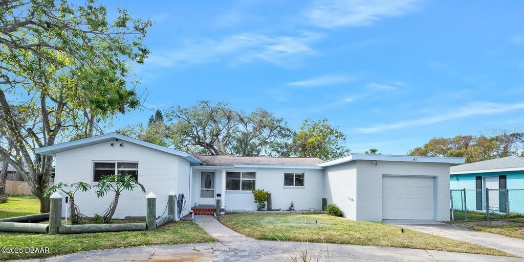 NEW ROOF - JUNE 2025! Unbeatable location. This charming home sits in a fabulous beachside area on a unique tree covered lane just a short stroll to boutique shopping, quaint pubs, great restaurants, coffee shops, our beloved Ormond Art Museum, Memorial Gardens, The Casements Community Center, two riverfront parks and the new ''neighborhood sized'' Publix with a Pours Cafe. Did I mention, The Atlantic Ocean is just three blocks to the East with direct access via a community beach walkover? The adorable home maintains all of the original charm of 1958 with gleaming oak floors throughout with the exception of the lovely vintage cracked mosaic tile (excellent shape) in the sunroom that overlooks the private, fenced back yard. Ahead of it's time, this home features an open floor plan where kitchen, dining, family room and sunroom all flow together in a great room layout. Gracious window spaces allow for plenty of natural light to illuminate the interior spaces while giving way to views of the surrounding green spaces from the interior living areas. Both bedrooms are true suites with private baths and occupy separate corners of the house offering private quarters. Step out back and enjoy the peaceful covered and screened lanai that creates a unique outdoor living and entertaining area overlooking the oak shaded backyard. Solid concrete block construction with brand new roof being installed. The two car tandem garage features a single door, however the length is double deep to accommodate two cars or plenty of room for beach toys, golf cart bicycles etc. Easy to see!