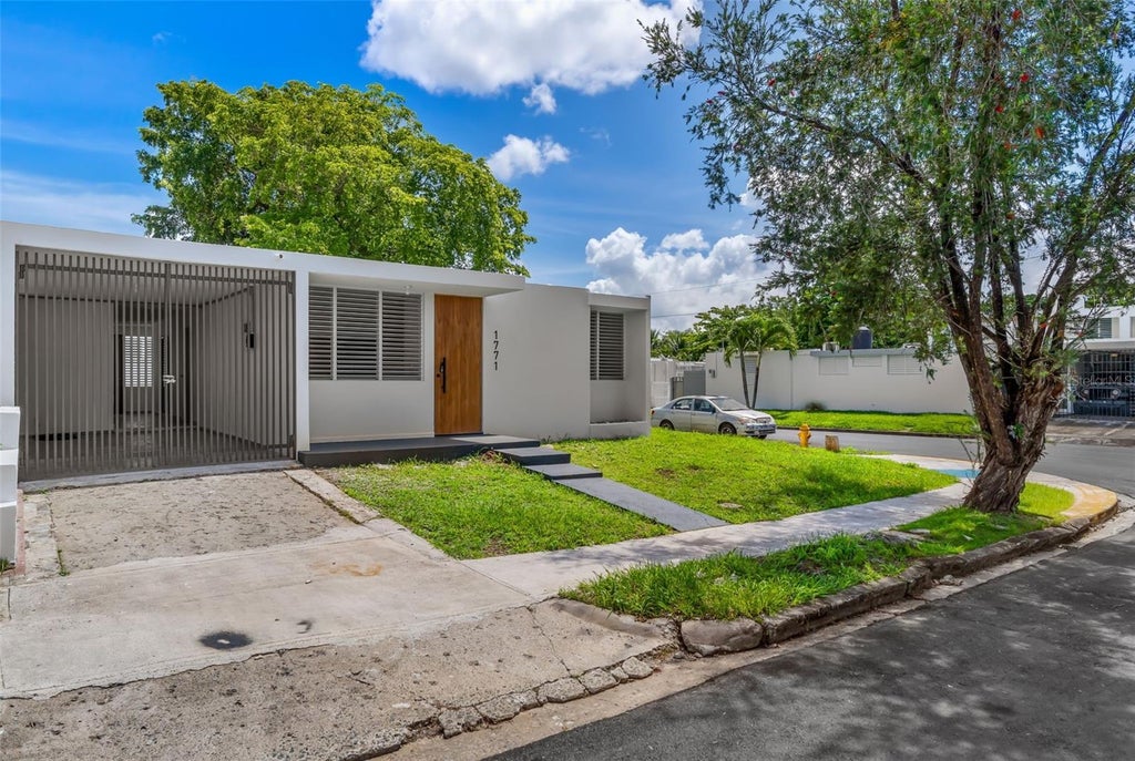 Corner property located at Calle Leo #1771, Urb. Venus Gardens, San Juan. Approx. 400m² lot and one-level residence with approx. 1,450 sq.ft. of construction. The property features 4 bedrooms, 2 bathrooms, living room, dining room, renovated kitchen with PVC cabinets, laundry area, and a single carport with potential to add additional parking space. Interior fully remodeled with new floors, new doors and windows, and mirrored closet doors. Located in a quiet residential neighborhood with easy access to Cupey, hospitals, schools, restaurants, and main roads. Not located in a gated community.