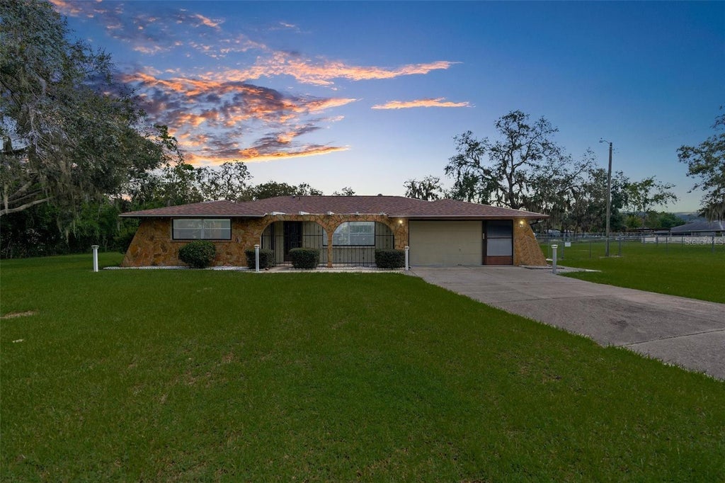 Country style living while close to all amenities. Plenty of room for everything! Charming 3-bedroom, 2-bath pool home boasting over 1,800 sq ft of living space. Nestled on a spacious and flat 1.28-acre lot, this property features mature trees that offer privacy and tranquility. The spacious main living area is beautifully finished with ceramic tile flooring, and the family room includes a cozy fireplace, adding warmth and charm to the home. Large covered patio overlooking the screened in pool, perfect for pool parties. The spacious kitchen features an island that overlooks the family room—perfect for entertaining and family gatherings. Recent upgrades include a new roof, ensuring peace of mind for years to come. The backyard includes a large workshop, ideal for hobbies or extra storage. Zoned agricultural, this versatile property is ready to become your family’s new home, offering the perfect blend of country charm and modern comfort