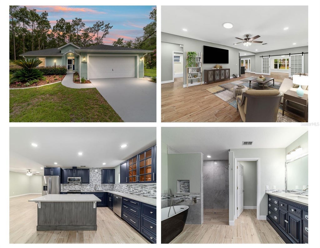 One or more photo(s) has been virtually staged. This redesigned three-bedroom residence in Rainbow Springs Country Club offers 1,916 square feet of updated living space on a generous 0.73-acre lot. A newer roof, AC and heat system, and a new hot water heater add peace of mind, complementing the home’s thoughtful upgrades. The layout features two full baths, a flexible den, and two screened porches—one off the kitchen and another off the primary suite—perfect for enjoying the tranquil surroundings. The renovated primary suite includes a spa-style bath with a standalone soaking tub, walk-in shower, and dual closets, including a walk-in. At the heart of the home, the kitchen showcases new cabinetry, quartz countertops, a center island and premium appliances—all with a modern aesthetic. Step outside to views of a neighboring horse farm, creating a rare and serene backdrop. Rainbow Springs Country Club residents enjoy a community clubhouse, pool, fitness center, tennis and pickleball courts, and exclusive access to the Rainbow River for kayaking and tubing. This move-in-ready home offers comfort, privacy and an amenity-rich lifestyle in one of Dunnellon’s most desirable communities. One or more photo(s) has been virtually staged.
