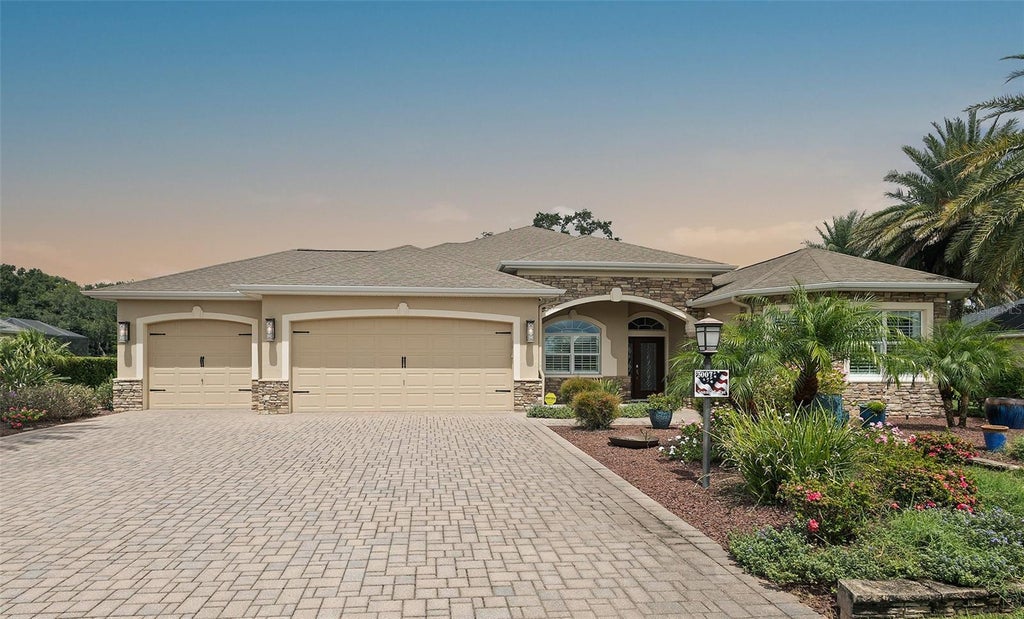 Welcome home to one of the MOST SPECTACULAR GOLF COURSE VIEWS IN THE VILLAGES! With no homes behind or roads in sight, this EXPANDED 3-bedroom, 2-bath Fully and Tastefully Furnished WILLIAMSBURG PREMIER in the VILLAGE OF PENNECAMP offers serene privacy and resort-style living. BOND PAID! Step into a beautifully appointed interior with HARDWOOD FLOORS and DIAGONAL TILE floors, TRAY CEILINGS with decorative CROWN MOLDING, rounded corners, wainscoting, chair rails, and PLANTATION SHUTTERS. The chef’s kitchen features GRANITE COUNTERS, diagonal tile backsplash, stainless steel appliances, built-in induction/convection stove, double-door pantry with pull-outs, a large island with seating, and a sunny casual dining area with SOLAR TUBE LIGHTING THROUGHOUT. You'll LOVE the FURNISHING & DECOR PACKAGE - Designed by a local designer - INCLUDED WITH THIS AMAZING HOME. The OPEN LIVING SPACES flow seamlessly to the lanai through STACKBACK SLIDING GLASS DOORS leading to the lanai & outdoor spaces framing the uninterrupted golf course views. Entertain effortlessly with a 36x16 SOLAR HEATED SALT-WATER POOL, gas-heated spa, travertine lanai, decorative columns, and a FULL SUMMER KITCHEN including a built-in beer kegerator and a built-in Alfresco grill and wall-mounted TV. The Owner/Primary Suite is a PRIVATE RETREAT with hardwood floors, tray ceiling with fine craftsmanship in the crown and tray ceiling trims, French doors to the pool, dual walk-in custom closets, and en-suite bath with soaking tub, walk-in Roman shower with bench seating, dual sinks, and vanity. The guest suite includes two spacious bedrooms with hardwood floors, wall-mounted TVs, large closets ( one is walk-in and one is built-in), a beautifully tiled bath with frameless glass shower and an expansive vanity top. Additional highlights include a laundry room with built-in sink, 3-CAR GARAGE with EPOXY FLOORING, workshop space, custom exercise room, and a beautifully landscaped lot with pavered driveway, stacked stone accents, and lush tropical plantings. For peace of mind, the HVAC was replaced in 2019 and the Roof 2014. This home is a rare combination of luxury, entertaining, and unparalleled golf course views, ready for you to move in and enjoy The Villages lifestyle to the fullest. Experience the charm of the Village of Pennecamp, where beautifully designed homes are complemented by a lively, welcoming community. Residents enjoy an active lifestyle with access to Lake Miona, nearby CHAMPIONSHIP AND EXECUTIVE GOLF COURSES, and endless opportunities for recreation and relaxation. The Pennecamp Neighborhood Recreation Center, located in the heart of this Viillage, is a hub for socializing, fitness, and fun activities, making it easy to meet new friends and fully embrace all that The Villages lifestyle has to offer.