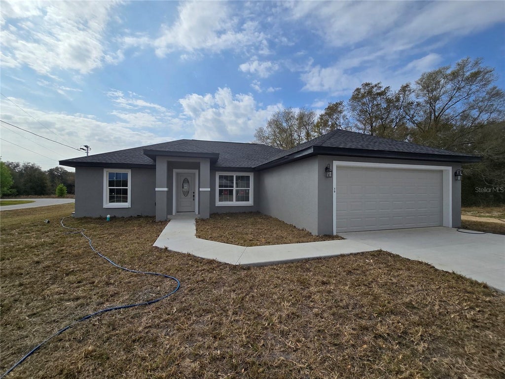 Come see this spacious, 3 bedroom, 2 bath, 2 car garage on a CORNER LOT in the very popular Silver Springs Shores area. This home features a split plan, high ceilings & QUARTZ STONE counters in the KITCHEN, BATHROOMS & WINDOW LEDGES! When you step in side, you will notice the open design with tall ceilings and a split floor plan. To the right, the primary bedroom features an oversized closet & en suite bathroom with A FULLY TILED, EZ ENTRY SHOWER & linen closet. The kitchen, has whisper quiet drawers & UPGRADED cabinets with stylish knobs. Gorgeous gold tone deep sink with a beautiful open view. DELUXE SAMSUNG APPLIANCE PACKAGE INCLUDES Stainless steel Fridge, Dishwasher, Stove & Microwave comes with the home as a standard. A beautifully patterned Quartz counter island comes with room for chairs. Nearby, you have access to the laundry room & garage via a handy pocket door. Across the house, the secondary rooms share the bathroom and will have good space for a full size bedroom set, office, or a game room. The choices are endless! Ample closet space has been supplied as well for all of their storage needs. The .24 acre CORNER LOT gives you plenty of room for all of your toys! NOT IN AN HOA so you are free to build a fence, add a pool, do what you want, how you want! On a well and septic system so NO UTILITY BILLS is also a great plus! If you install back up power in preparation for any possible outage, you will still have use of water and sewer as long as you have electric! Close enough to give you access to Belleview, Summerfield, The Villages, The Interstate and beyond. Less than 10 min to Wal-Mart, Publix, Aldi & Save a Lot, The post office, 3 auto parts stores & car washes as well as many food & medical offices nearby for ease. A short drive in either direction will lead to Ocala downtown square or to our famous Lake Weir, where you can boat, kayak, jet ski, or enjoy a meal on the lake over looking the sunset. In a USDA eligible area & we are First Time Homebuyer & Veteran friendly!