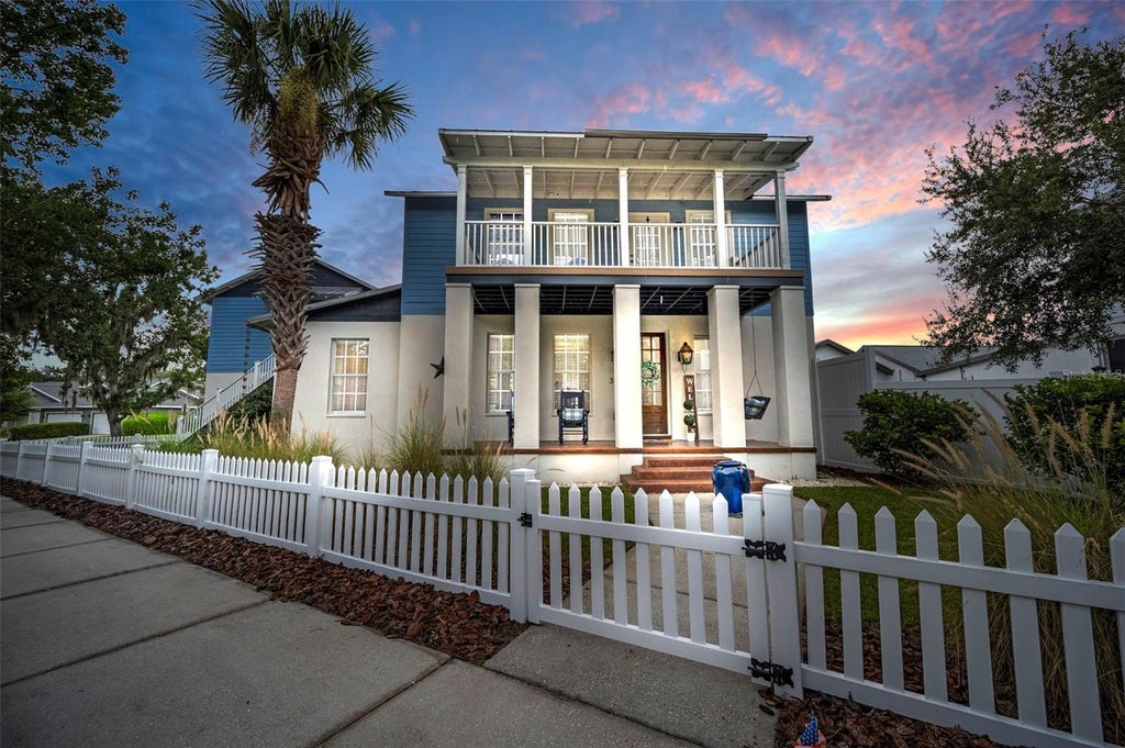 Charming Custom Built Two-Story Home with Guest Apartment in Highly Sought-After Longleaf! This beautifully designed home offers the perfect blend of Southern charm and modern upgrades. Set behind a classic picket fence, the home features a welcoming front porch with stained concrete floors, wood-stained ceilings, and gas lanterns—ideal for relaxing or entertaining. A rare find, the property includes a 1 bed/1 bath potential rental apartment, guest suite or home office over the garage with private entry. Inside the main home, you'll find custom details throughout, including crown molding, stained concrete and wood floors, a built-in entertainment center in the great room, and double French doors leading to a private pavered courtyard. The newly remodeled kitchen showcases stainless steel appliances, a breakfast bar, closet pantry, and tile backsplash, with an adjacent formal dining area for entertaining. The primary suite is conveniently located on the main level, offering sisal carpet floors, a luxurious ensuite with dual sinks, walk-in tiled shower, stained concrete flooring, and a custom walk-in closet with built-ins. Upstairs features a cozy loft with access to a balcony, two guest bedrooms, and a full bath. Enjoy the back covered porch with wood-stained ceiling, private courtyard, and no maintenance turf. The metal roof adds durability and curb appeal, while the two-car garage completes the package. Longleaf is a vibrant, amenity-rich community featuring a resort-style pool and spa, Longleaf Elementary, tennis and pickleball courts, playgrounds, walking trails, dog park, sports fields, basketball, and sand volleyball. Just a short walk to Starkey Market and close to shops, restaurants, and medical facilities.