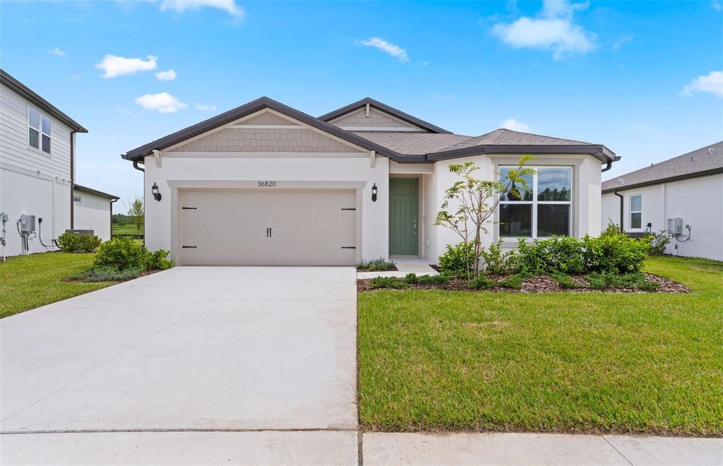 One or more photo(s) has been virtually staged. Move in Ready Available NOW!! Pulte Homes is Selling in Riverwood! Enjoy all the benefits of a new construction home in this highly amenitized community, ideally located in Wesley Chapel. This new community will feature a resort-style pool with an open cabana, a clubhouse, a fitness center, nature trails, shared green spaces, pickleball courts, a screened-in game room, and a dog park! This home has the upgrades you've been looking for, featuring the perfectly sized Heston floor plan with a single-story, open-concept home design. The designer kitchen showcases an island, modern cabinets, 2cm quartz countertops with a 3"x12" tiled backsplash, a large pantry, Whirlpool stainless steel appliances including a dishwasher, microwave, range, and refrigerator and a large single-bowl sink. The bathrooms have matching cabinets and quartz countertops, comfort height commodes and a walk-in shower and dual sinks in the Owner's bath. There is 12”x24” floor tile in the main living areas, baths, and laundry room, and stain-resistant carpet in the bedrooms. This home also features a convenient laundry room with Whirlpool washer and dryer, a 2-car garage and covered lanai. Additional upgrades include 4 LED downlights in the gathering room, pendant pre-wiring in the kitchen, upgraded door hardware, whole house faux wood blinds and a Smart Home technology package with a video doorbell. Enjoy peace of mind with Pulte’s transferable, 10-year Limited Structural Warranty that covers materials and workmanship in the 1st year, workability of plumbing, electrical, HVAC, and other mechanical systems through the 2nd year, various types of water infiltration and internal leaks through the 5th year, and the structural integrity of the home through the 10th year. Plus, we’re currently offering limited-time incentives and below-market rates!