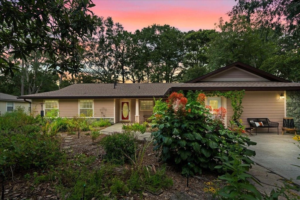 Beautiful, Spacious, Updated Home with Flexible Living Spaces in a Prime Location – No HOA Meticulously cared for by the same owner for 28 years, this thoughtfully updated 4-bedroom, 2-bath home blends comfort, style, and functionality. Inside, the renovated kitchen features 42-inch soft-close cabinets, butcher block counters, stainless steel appliances, a double oven, and a gas range. High vaulted ceilings, fresh interior paint, shiplap accents, chair rail detailing, and a bay window create a warm, inviting atmosphere. The 2004 family room addition offers a vaulted ceiling, gas fireplace, built-in shelving, and its own AC unit, with French doors leading to a private patio. A spacious 4th bedroom—with its own exterior entrance—provides endless possibilities as an office, in-law suite, media room, or workshop. The exterior boasts hardiboard siding with stone accents, energy-efficient windows, and a newer roof replaced (2022). Ample outdoor storage including a externally accessed room and a 2-story shed, and a gardener’s paradise backyard with raised beds. Additional highlights include replumbed (2014), a gas water heater (2014), HVAC and ductwork replaced in 2019. This move-in ready home offers modern updates, flexible spaces, and no HOA—in a fantastic quiet neighborhood location with great schools. It just minutes from great shopping and dining in Hunter’s Crossing and Millhopper and near numerous parks and trails. The university of Florida is just 4 miles away. Come visit today!