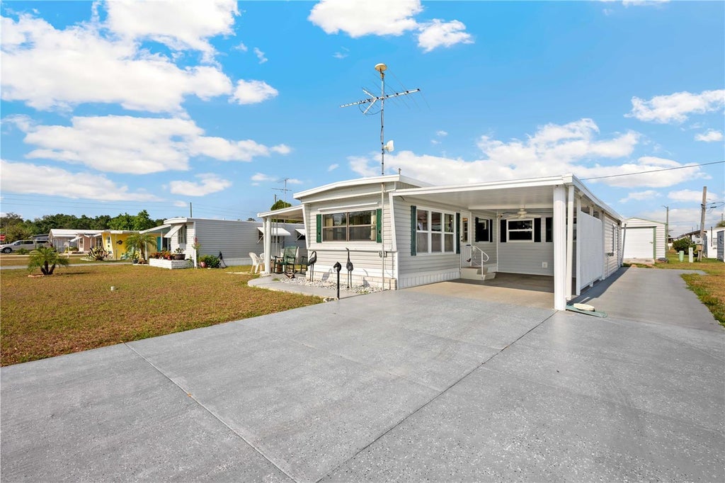 Charming Updated 2-Bedroom Home in Betmar Acres—Move-In Ready! Step into this beautifully maintained 2-bedroom, 1-bath home in the sought-after 55+ community of Betmar Acres, where modern updates meet timeless charm. The heart of the home is the showstopping kitchen, featuring updated mission-style cabinetry, custom countertops, newer appliances, an abundance of storage with multiple pull-out cabinets, pantry, and a sleek stainless-steel faucet at the upgraded sink—perfect for home chefs and entertainers alike. Adjacent to the kitchen, the dining area boasts large windows that flood the space with natural light and seamlessly connect to the open concept living room. The bright and airy living room offers a welcoming atmosphere with walls of windows that create a cheerful space for relaxing or entertaining. From the living room, step into the oversized Florida room, complete with a painted cement floor, ceiling fan, and expansive double-pane windows—ideal for hosting gatherings or enjoying a quiet morning coffee. Just off the Florida room, you'll find a versatile card/game room that can easily serve as a home office or cozy den, featuring a ceiling fan, electric fireplace, and more. The primary bedroom, tucked at the back of the home, comfortably fits a queen-sized bed and offers a spacious built-in closet with extra storage. The adjoining en-suite retreat features an updated vanity, step-in shower, tile flooring, and ample storage space. A bonus room provides flexibility as a second bedroom, guest space, or hobby room as needed. Outdoor living shines with oversized wraparound patios off the Florida room and the back of the home, offering multiple areas to relax and enjoy Florida’s sunshine. The Florida room itself could even be transformed into a third bedroom, man cave, or additional living space. Additional highlights include a metal roof-over, fresh interior paint, durable vinyl siding with brick and vinyl skirting, and a detached shed—perfect for extra storage or your golf cart. Best of all, this home is being sold fully furnished for a truly move-in-ready experience. As a resident of Betmar Acres, you'll enjoy fantastic amenities, including three golf courses, two swimming pools, hot tubs, pickleball and tennis courts, shuffleboard, billiards, and a variety of social clubs and activities. Don’t miss your chance to live your best 55+ lifestyle in this vibrant community at 5251 Flint. Schedule your showing today!