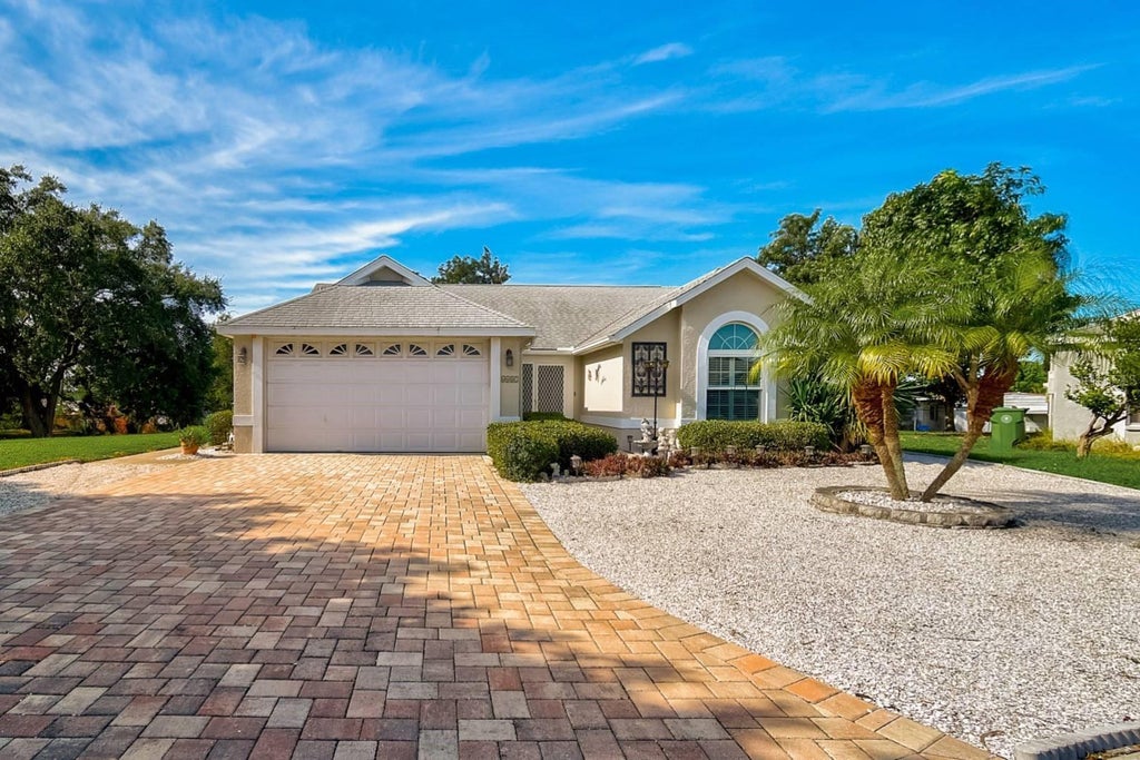 STUNNING 3 Bedroom, 2 Bathroom Pool Home with 2 Car Garage in Cordova Lakes being sold TURNKEY FURNISHED! Nestled on a sprawling oversized lot in a private cul-de-sac with a paver brick driveway, this gorgeous lot is one of the largest in the entire neighborhood! The seller has taken care of the big-ticket items, so you can move in with peace of mind: NEW ROOF (2023), NEW A/C (2022), and NEW IMPACT WINDOWS! Step inside through the foyer and be greeted by 10-ft ceilings and an abundance of natural light pouring through the numerous windows. The open and airy layout features tile flooring throughout the main living areas, including a spacious dining room and living room.The kitchen is a chef’s delight, boasting updated Samsung matte black appliances, Corian countertops, shaker-style cabinets, and a breakfast bar. Adjacent to the kitchen is a cozy family room, the ideal space for entertaining guests or spending time with loved ones.The massive master suite is a true retreat, with plenty of space for a sitting area, an enormous walk-in closet, and a beautifully updated en-suite bathroom featuring his-and-hers vanities, a linen closet, and a large walk-in shower. On the opposite side of the home, you’ll find two additional bedrooms and a second full bathroom with a walk-in shower, providing privacy and comfort for family and guests alike. Open the pocket sliding doors to seamlessly blend indoor and outdoor living. The screened-in pool area is your personal oasis, perfect for soaking up the Florida sunshine. A covered patio area provides a shaded space to dine al fresco or simply unwind with friends and family.The backyard offers privacy and includes a large shed for extra storage. The Cordova Lakes neighborhood is centrally located, close to shopping, dining, hospitals, and the Robinson Preserve. Plus, you’re just a few miles from the beautiful beaches of Anna Maria Island, with endless opportunities for kayaking, biking, swimming, boating, and more. This home is completely move-in ready and waiting for its new owners. THIS PROPERTY WOULD MAKE A GREAT SHORT TERM RENTAL WITH IMMEDIATE RETURN. Don’t miss this opportunity --Schedule your showing today!