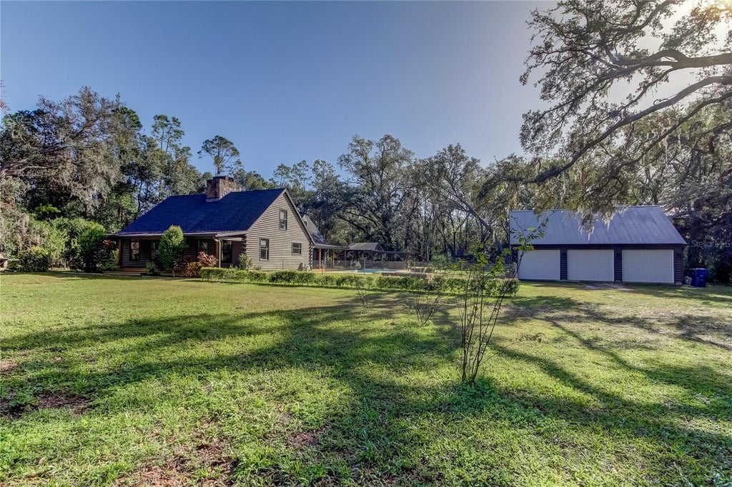 Nestled on a private & serene 4-acre lot, this beautifully renovated 2-bedroom plus an office space, 2.5-bath log cabin offers a perfect blend of modern rustic updates and amenities. With 2,317 square feet of updated living space, the home features a well-thought-out open floor plan, making it ideal for both comfortable living and entertaining. The heart of the home is highlighted by a stunning double-sided wood-burning fireplace that adds both warmth and ambiance. The kitchen is equipped with appliances purchased in 2020, offering sleek finishes and all the functionality you need for meal preparation. A large dining area provides the perfect spot for family meals or gatherings with friends. Step outside to enjoy the expansive grounds, complete with an inground chlorine pool, refinished just six months ago and complemented by a new pump system installed just two weeks ago! The outdoor space offers both privacy and tranquility, with plenty of room for outdoor activities, gardening, or simply relaxing in nature. You'll find a 3-car detached garage, which includes a half-bath, laundry room, and unfinished loft space above, offering the potential for future expansion, a workshop, or additional storage. A convenient water softener and filtration system convey with the property, ensuring clean and softened water throughout the home. Additional features include a dual-well system one dedicated to irrigation and a newly installed septic system that is just six months old! You'll also acquire a new roof and HVAC system, both replaced in 2021, giving you peace of mind for years to come. This cabin could be negotiated to come fully furnished, making it an even easier move-in option for those looking to enjoy this beautiful property right away. Don't wait, make an offer today!