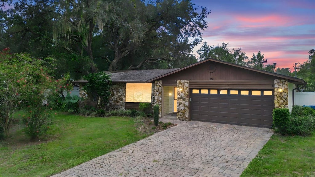 DELAND: Welcome home to this 3 bedroom 2 bathroom home with over 1,600sq ft on a generous .37 acres. This ranch style home boasts a paved driveway, easy to maintain landscaping and a fenced yard! The living room features built in shelving to display your favorite books and collections. The dining area has plenty of space for a large table and it is off the kitchen for easy entertaining. The Galley kitchen has plenty of room to cook your favorite meals and has a great view of the backyard! The Family room is the heart of the home with a cozy fireplace, additional floor to ceiling built in shelving and French doors to the backyard. The laundry area is in the garage and it offers so much extra storage space and a sink for easy clean up. All Bedrooms are spacious with ceiling fans and large closet space. The Large Florida room is a great space to unwind after a long day. So much extra living space! The backyard has plenty of room to run and play and trees offer shade during the hot summer months. The Shed is a great space to store lawn equipment. The location is close to shopping, restaurants and all DeLand has to offer. Don't wait! Make your appointment today to see all this home has to offer you!