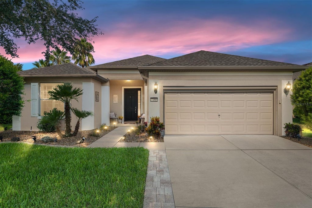 Welcome to your new home in the highly sought-after Del Webb Stone Creek community in Southwest Ocala! This beautifully maintained 3 bedroom, 2 bathroom Sheridan model offers 1,736 sq. ft. of comfortable living space, with thoughtful upgrades throughout. The main living areas feature luxury vinyl plank flooring, combining modern style with easy maintenance. In the heart of the home, the kitchen is equipped with stainless steel appliances and durable Corian countertops, making it as functional as it is beautiful. The spacious primary suite includes a large walk-in closet and a private bath with a walk-in shower, providing a relaxing retreat. All three bedrooms feature carpeting updated just two years ago, ensuring a fresh and cozy feel. The home also boasts new attic insulation (2024) for improved energy efficiency. Storage racks in the garage for added organization, as well as a roll down privacy screen for the garage door. Enjoy the Florida lifestyle year-round in the expansive 10’ x 28’ enclosed lanai, complete with brand-new shades for privacy and comfort. Just outside, you’ll find a patio with an automatic roll-up awning—ideal for morning coffee or evening gatherings. The backyard is fully enclosed with a new 4-foot fence, offering a perfect spot for pets. Other major updates include a new roof (2025), giving you peace of mind for years to come. All of this comes with the incredible amenities that Del Webb Stone Creek is known for, including a championship golf course, resort-style pool, fitness center, walking trails, and a vibrant social calendar. Don’t miss the opportunity to make this move-in ready Sheridan model your new home in one of Ocala’s premier 55+ communities!