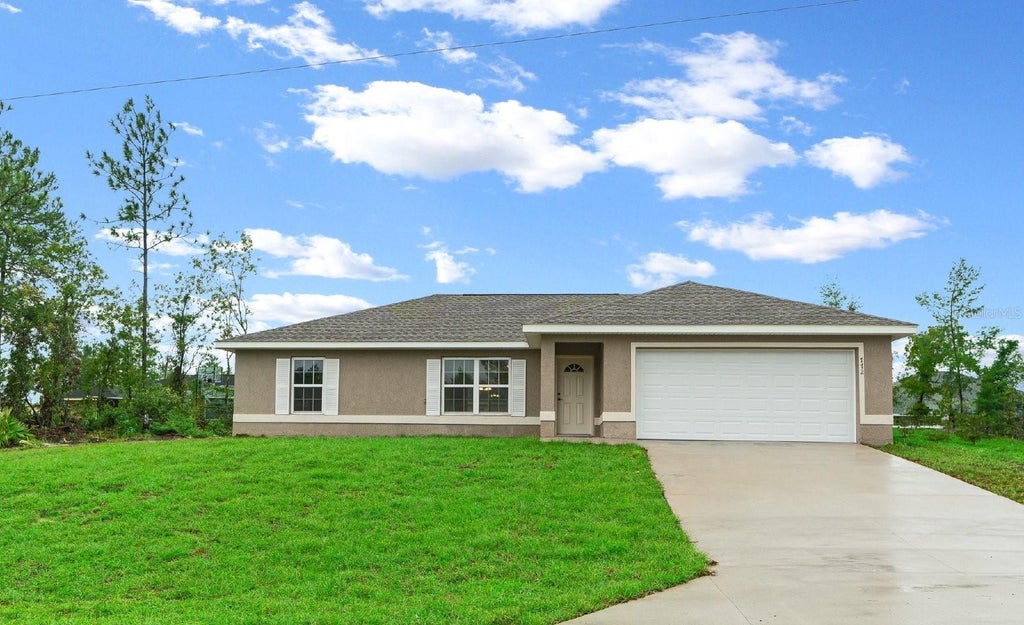 ***Beautiful Home in Marion Oaks*** Welcome to 772 Marion Oaks Trail, a lovely new home offering the perfect combination of style, comfort, and functionality. Featuring 3 spacious bedrooms, 2 modern bathrooms, and an attached 2-car garage, this thoughtfully designed residence is ideal for families or anyone looking for contemporary living in a prime Ocala location. Step into the bright and open living space featuring luxury tile plank flooring, 9’4” ceilings, and an expansive open floor plan perfect for entertaining or relaxing at home. The kitchen showcases 36" real wood cabinets, quartz countertops, and a full suite of stainless steel appliances, including a refrigerator, range with hood, dishwasher, and electric water heater—all designed for both beauty and convenience. The master suite offers a generously sized walk-in closet, while the double-pane, low-emission windows, LED lighting, and high-performance 16 SEER HVAC unit ensure energy efficiency and year-round comfort. Enjoy the curb appeal of designer landscaping and the practicality of an irrigation system. The home also features a seamless mix of tile and carpet flooring, combining comfort with easy maintenance. Located in the growing Marion Oaks community, you're just a 20-minute drive from the World Equestrian Center, with easy access to I-75, shopping centers, dining options, and medical offices—all just minutes away.