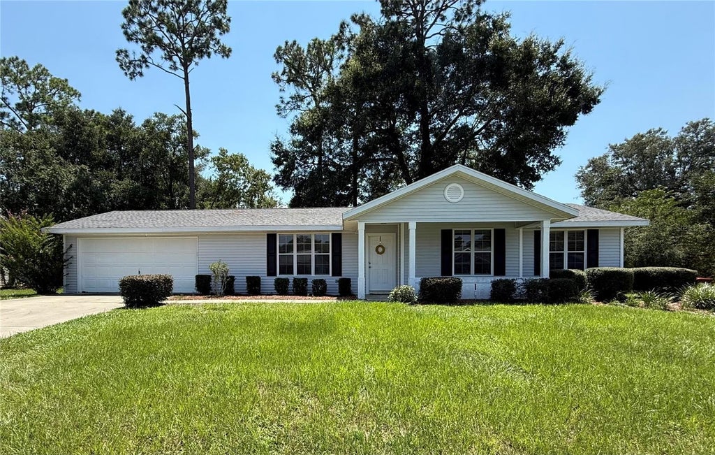 This move-in ready expanded Hampton model sits on a rare larger .32-acre lot in the desirable 55+ gated community of Oak Run and features a newer roof completed in 2020 for peace of mind; inside, you’ll find high ceilings, a spacious eat-in kitchen with a dedicated dining area, tile flooring throughout the main living spaces, and carpet in the bedrooms, while the large primary suite offers a generous walk-in closet and all appliances, including the washer and dryer, convey; the oversized two-car garage with automatic opener provides laundry space, storage, and room for projects, and outdoor living is ideal with a welcoming rocking-chair front porch and a large screened patio overlooking a private backyard with mature trees; Oak Run residents enjoy resort-style amenities including multiple clubhouses with fitness centers, swimming pools including an indoor heated pool for year round swimming, spas, and community rooms, as well as tennis, pickleball, shuffleboard, bocce ball, a golf course with driving range, craft and ceramics studios, a library, dog park, ballroom, and the recently renovated Oak Room Bar & Grill restaurant; the location is unmatched with excellent healthcare nearby including the AdventHealth Emergency Room located directly across the street from the community along with HCA Florida Ocala Primary Care, Quick Care Med Urgent Care, and TimberRidge Imaging Center, plus shopping conveniences such as Publix, Walmart, and Aldi just minutes away; this clean and inviting home offers comfort, privacy, and an active lifestyle in one of Ocala’s most sought-after retirement communities.