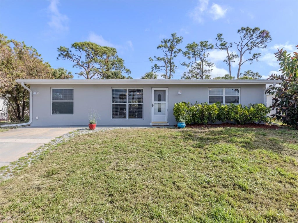 ***BACK ON THE MARKET!! BUYERS FINANCING FELL THROUGH!!***** This beautifully maintained split 1,187-square-foot home offers a blend of modern updates and functional design with public water and sewer! The spacious floor plan features a welcoming great room design ideal for entertaining and everyday living. The home features stylish tile and laminate flooring throughout, adding durability and charm throughout. At the heart of the home lies a large, updated kitchen, complete with solid wood cabinetry, sleek granite countertops, a convenient breakfast bar and stainless-steel appliances for the home chef. Sliding glass doors from the kitchen lead directly to the expansive screened lanai, enhancing indoor-outdoor living. Comfort is ensured year-round with two air-conditioning units installed in 2010, while a new roof in 2022 and water heater in 2018, ensuring efficiency and peace of mind. The primary suite serves as a private retreat, offering two generous primary closets and a private en suite with a walk-in shower. On the opposite side of the home, two additional spacious bedrooms and the second full bath provide ample space for family, guests or a home office. Go outside to enjoy the large, screened lanai, complete with convenient half-bath access, or relax on the concrete patio with ample space for a hot tub. The fenced backyard, featuring double gate access, offers privacy and versatility for outdoor activities. Just minutes from dining, medical facilities, shopping, top-rated schools, Warm Mineral Springs, Cool Today Park with Braves spring training and U.S. 41.
