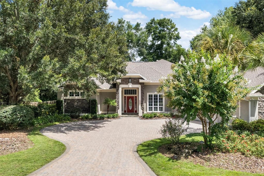 Welcome to this stunning, impeccably maintained, 4/3 executive pool home, tucked away in the Braemar neighborhood of Cobblefield. Situated on a beautifully manicured property, this home is a beauty….exceptional curb appeal accentuated with lush landscaping, paver driveway, and an elegant, stacked stone entryway. Step inside to abundant natural light and beautiful, natural bamboo flooring throughout the main living spaces. Inviting you into the home, the dining room and living area are perfect for entertaining guests or hosting family gatherings! The heart of the home is a chef-inspired kitchen created by Haile Kitchen and Bath, featuring: Expansive breakfast bar, stainless steel appliance suite, instant hot water faucet, custom wood cabinetry with TWO built-in pantries, a coffee station, appliance storage, stone countertops AND full backsplash. The kitchen flows to the great room/family room; the chef won’t miss any of the action! There is an informal dining/breakfast nook and Plenty of of room for flexible furnishing arrangements. The three-way, split floor plan offers privacy and flexibility: The luxurious primary retreat occupies one wing, with direct access to the pool and lanai. This bedroom opens to the two custom closets, certain to delight the most discerning, fashion-forward owners! The bath is spacious, featuring dressing table, dual vanity and sinks, and oversized shower. A private water closet completes the package. Two spacious bedrooms and bath are located in the second wing. The fourth bedroom, third bath, and a large media room are tucked away in the third wing—ideal for guests, families, or multi-generational living. The media room is an entertainer’s dream, featuring a custom, built-in entertainment center with variable lighting, an electric fireplace for ambiance, an adjustable, custom TV mount system, even a wet bar with granite countertops and a wine/beverage fridge. Family and friends will LOVE this space! The media room opens directly to your own private backyard oasis. Enjoy the pool and spa, waterfall feature, and multiple lounging and dining areas! The yard is fully fenced with two separate areas, perfect for pets or play…custom landscape lighting is wonderful for your evening enjoyment. Additional highlights of this home include a 3-car garage with mini-split A/C and insulation to enjoy your hobbies, baby your vehicles, house your Toys, or to take advantage of its climate-controlled, abundant storage. This home truly has it all—luxury, functionality, and the perfect layout for everyday living or entertaining! New roof in 2022, new HVAC 2025; move in and enjoy Florida living at its Best!