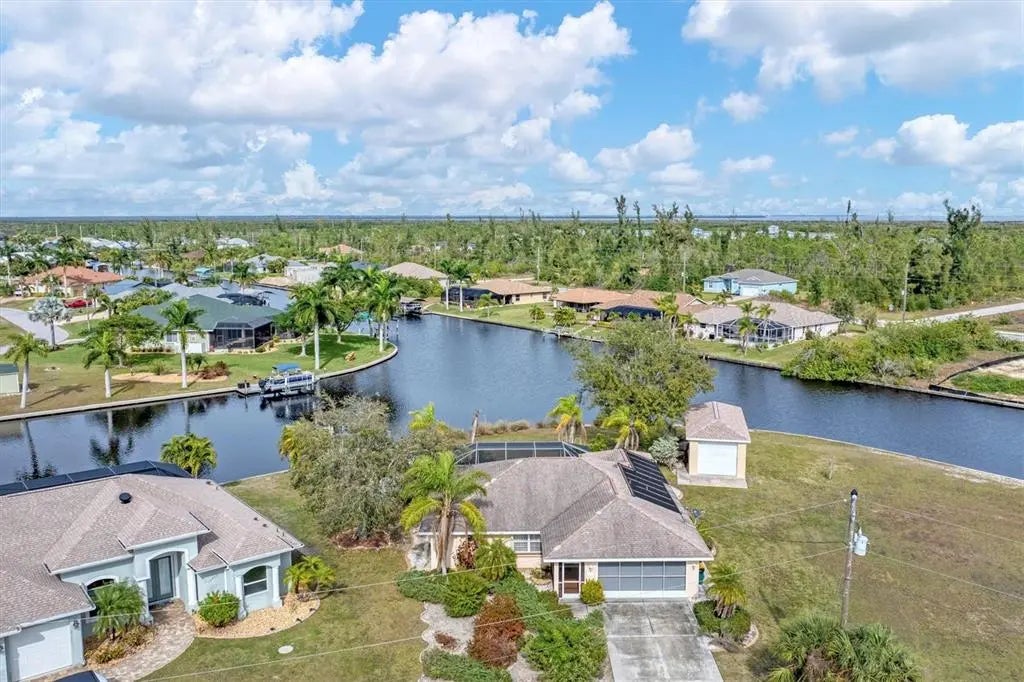 LOCATION * LOCATION * LOCATION * WATERFRONT * POOL HOME * OVERSIZED TIP LOT * 166 ft. of CEMENT SEA WALL * DOCK AND 6K LIFT * SPECTACULAR WATER VIEW !!! In the WATERFRONT BOATING Community of SOUTH GULF COVE With Boating access to the Gulf of Mexico and Surrounding ISLANDS. Only 1 Bridge to a Quick and Easy Out to the Lagoon and Charlotte Harbour. This Home features 3 Spacious Bedrooms, 2 full Baths, OPEN FLOOR PLAN, Vaulted Ceilings, Sliders to LANAI and Spacious POOL area. Living Room has nice Tile floors, Ceiling fans and Light Fixtures. Kitchen has STAINLESS STEEL appliances to include Refrigeator, NEW LG STOVE, NEW LG MICROWAVE, Large PANTRY Closet, Dishwasher, Double Sink, Nice Countertops and Cabinets. BREAKFAST NOOK with large picture window to maximize your WATER VIEW and Sliders to Lanai. Split GUEST BEDROOMS and Full Bath with Tub and Linen Closet. Primary Suite has a Large Walk-in Closet, Vanity, Linen closet, Tiled Shower, NEW plank flooring and Sliders to Lanai. A sparkling SALT WATER POOL to Enjoy and covered outdoor dining and entertaining any day of the year. There is a 16’ BOAT DOCK with WATER, ELECTRIC and 6K LIFT, Nice Spacious back yard with Mature Landscaping and Another very special feature of this property is the 504 sq. feet tandem DETACHED GARAGE, which includes an 8’ tall overhead door which can accommodate your recreational vehicles. This home has FULL HURRICANE PROTECTION with ACCORDION SHUTTERS INSTALLED in 2019, a NEW OVERHEAD DOOR in the main garage installed 2019, NEW ROOF 2016, POOL PUMP 2019 and MORE features include...Screened Garage Door, NEW A/C and HEAT PUMP, NEW WASHER and DRYER. SOUTH GULF COVE is only minutes away from Southwest FLORIDA BEACHES in BOCA GRANDE and MANASOTA KEY with boating access to the Gulf of Mexico and Surrounding ISLANDS. Community offers several nice parks, boat ramp,marinas and a yacht club. With several Golf Courses, WORLD CLASS FISHING, Shopping and Great Restaurants only minutes away!!! HOA is OPTIONAL!!! EXPERIENCE the FLORIDA LIFESTYLE !!!