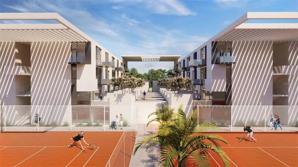 Pre-Construction. To be built. One or more photo(s) has been virtually staged. Preconstruction. To be built…Welcome Home to the Active lifestyle of the new Bath and Racquet Community available now for pre-sale. The new iconic First of its kind, Bath and Racquet Residences and Club consists of 256 condominiums featuring 1,2, and 3 bedroom units built around the Brand new Bath and Racquet tennis facility & state of the art Pickleball courts. This beautiful complex features a residences swimming pool, 1 kilometer walking trail, playground, dog park, cabanas, and the option to be a member of the exclusive Bath and Racquet Club, which will feature multiple Tennis and Pickleball courts, Resort style swimming pool, a restaurant and a fitness center. Pickleball courts will be available both outdoor and indoor. We are approximately 4 miles to the award winning Siesta Key beaches, 3 miles to downtown Sarasota, right next to Trader Joe's Grocery, and walking distance to CineBistro Cinemas and many restaurants. This luxurious community features floor to ceiling windows, a superb kitchen appliance package, Quartz countertops and a washer and dryer hook up in all of the units. Elevators and covered parking is also part of this world class project. Priced from the mid $400,000s, Homebuyers have a selection of 29 different floor plans and the option to lease their unit for seven night minimum stay.