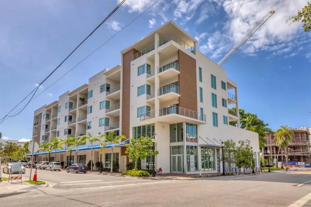 Modern 1 BED + DEN/1BA condo in the heart of Sarasota’s Rosemary District! In a stylish boutique building at 332 Cocoanut Ave, this fifth-floor unit offers an open-concept layout with high ceilings, quartz countertops, stainless steel appliances, and in-unit washer/dryer. Enjoy your private terrace, ideal for relaxing or entertaining. The building features secure entry, elevators, covered parking, and a rooftop heated pool with grill/lounge area. Go to dining, shops, arts venues and the Bayfront. Just minutes to Lido Beach, St. Armands Circle, and downtown Sarasota. Contemporary living in a prime location! Interior feature, open-plan living area with high ceilings and abundant natural light, spacious primary bedroom with built-in closet and flexible second bedroom or office space, quartz counters, private terrace, thermostat, post-tension concrete construction ensuring quality and sound separation.