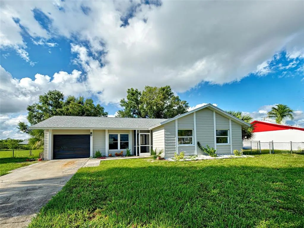 One or more photo(s) has been virtually staged. Step into this beautiful fully renovated 3-bedroom, 2-bathroom home with a versatile flex space, perfectly located in Port Charlotte! From top to bottom, this home has been thoughtfully updated for modern living. The open-concept floorplan is ideal for entertaining, featuring a brand-new kitchen with custom cabinetry, new countertops, and all-new appliances. Enjoy the stylish luxury vinyl flooring that flows throughout every room. The spacious primary suite offers a walk-in closet and a beautifully updated ensuite bathroom. Peace of mind comes with updated windows, and a 2-year-old roof. Freshly painted both inside and out—including the garage, which boasts a new epoxy floor—this home feels fresh, clean, and move-in ready. The landscaped yard is fully fenced with mature trees. Just minutes from the beach, shopping, and dining—this home checks all the boxes. Easy to show—schedule your private tour today!