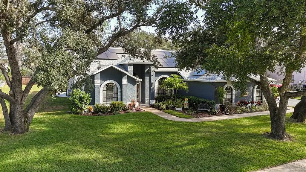 Welcome to the esteemed Eagle Watch community along the tranquil Alafia River! This exclusive gated neighborhood offers an exceptional lifestyle, featuring a beautifully remodeled home on a generous half-acre lot. Redesigned in 2023, the residence boasts modern cyber grey wood cabinetry, quartz countertops, brushed nickel accents, and stainless steel appliances. The breakfast nook overlooks the resurfaced pool, while the inviting family room, complete with a brick fireplace, provides a perfect space for entertaining. The home's split floor plan includes three spacious bedrooms on one side, with the master suite on the opposite side. The master suite features a wood-accented ceiling and a large sliding glass door that showcases views of the pool. The elegant ensuite bathroom is outfitted with modern vanities, quartz countertops, and a luxurious shower. Outside, the detached garage (30x45) has 3 bays that is ideal for storing toys and also offers a space for relaxation, sleeping, and showering. This detached garage has a bedroom and bathroom perfect for independent child or parent. In 2024, several upgrades were completed: new garage doors and openers, a new hot water tank, and a raised septic bed with a pump station. The property also boasts a new air conditioning system, including a mini-split unit in the master bedroom. The pool has received a new pump and heater, and a brand new roof with solar panels has been installed. Eagle Watch fosters a vibrant community spirit with tree-lined streets, tennis courts, a fire pit, and a community dock for boating enthusiasts, complete with a private boat ramp and clubhouse. Don’t miss the opportunity to own this stunning pool home in a highly sought-after gated community. Schedule your private tour today and discover the charm of living in Eagle Watch! **Extras:** - Full house air conditioning, including a mini-split for the master suite - Pool hardware, including a heater - New hot water heater - Garage doors with Bluetooth openers - Partial replacement of hurricane windows - Hurricane-rated front door - Raised septic system with a new holding tank and alarmed pump station -separate well for irrigation. - New roof with solar panels, ensuring static utility bills for 25 years, backed by warranty and maintenance from the solar company.